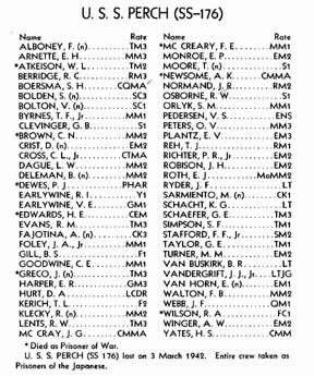 Click here for complete and accurate listing of men lost on USS Perch See also Ed Howard's Final Patrol page on USS Perch (external link). Home Presentation WWII Pre-WWII Post-WWII Sources Related Links Privacy Contact Us